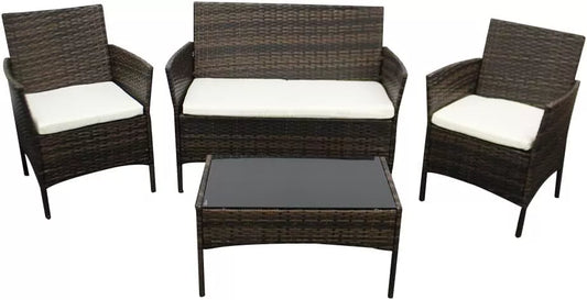 4 Piece Garden Rattan Furniture Table Chairs Sofa Wicker Outdoor Patio Set